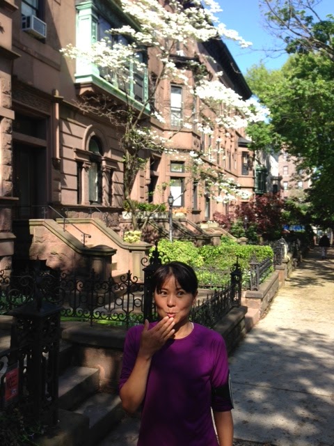 So when I set out on my run this morning, the temperature was in the low 60s. Not bad. By the end, I felt overheated. The warm weather has arrived. It's supposed to be 90 either tomorrow or Friday. What the fruck? I'm kind of nervous about the forecast for our half marathon at the end of June. I would welcome rain, if it's going to be Hell Hot. This is the only instance where rain is a welcome relief. My sister-in-law's brother just ran the Vermont City Marathon this past Sunday in the cold, pouring rain on ski mountains (Remember it felt like March in metro NY? It probably felt like January in northern New England!). It was his first marathon. If this was my first marathon experience, it very well may be my last. I give him a lot of credit for persevering.